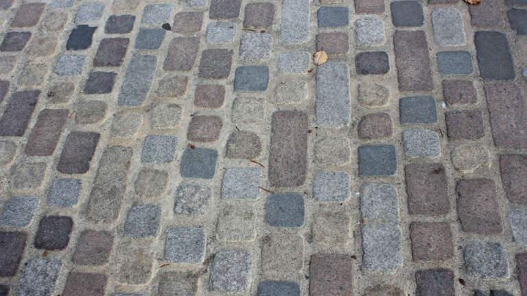 Mixed Temple Setts & Silver Pink Granite Kerb & Bench