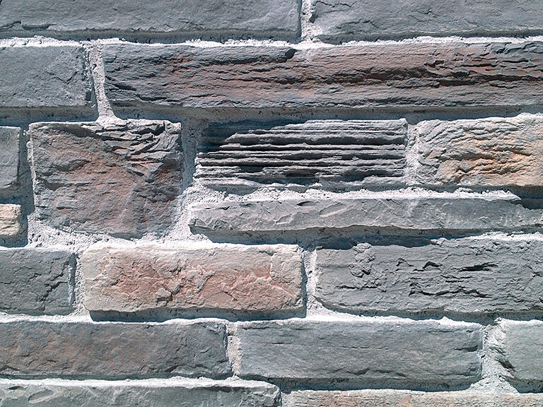 Inspired by Tyrolean architecture, Mix Tirol is designed to reflect the Alpine mountain environment. Tight-fitted or mortared, Mix Tirol can be used to achieve a number of unique treatments. A combination of horizontally shaped engineered stone with colors ranging from light and dark grey and light shades of purple.