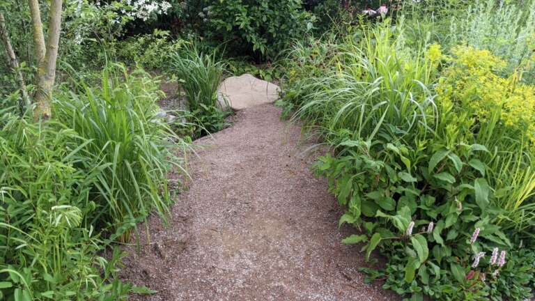 garden with CED Stone products making up the majority of hard landscaping products featured in the garden alongside beautiful reclaimed timber supplied by Ashwells Reclaimed Timber.
