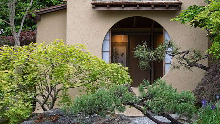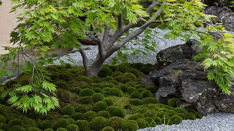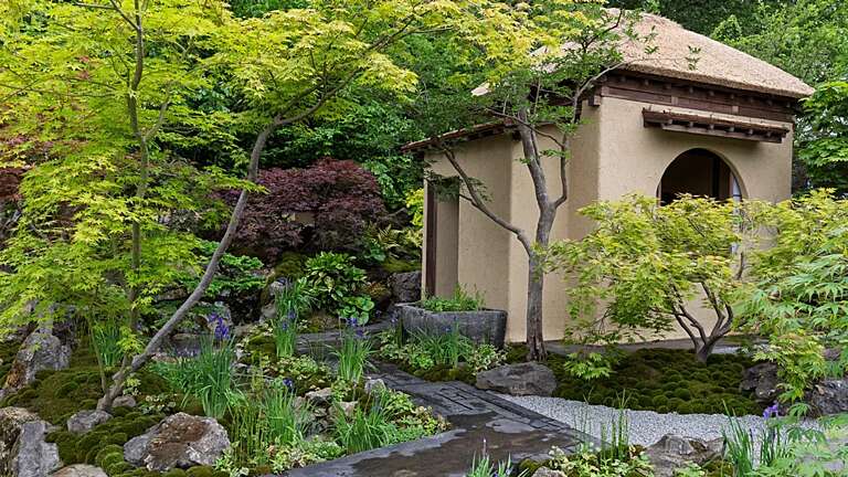 Subtle changes in level create depth and movement through the space, with the layout influenced by the Japanese art of flower arrangement, ikebana, specifically the Ikenobo School, which emphasises balance, rhythm and bringing plants to life.