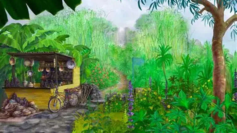 This garden follows the journey of an ecotourist on a gorilla trek, guiding visitors along a rugged path through richly layered landscapes either side of a Protected Forest boundary wall.