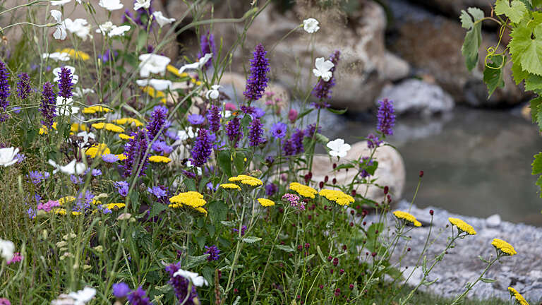 A soft palette of cream, burgundy and pink is woven through layers of green, with plants such as Ammi majus, Agrostemma ‘Ocean Pearl’ and Achillea selected for their strong appeal to pollinating insects.