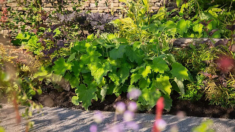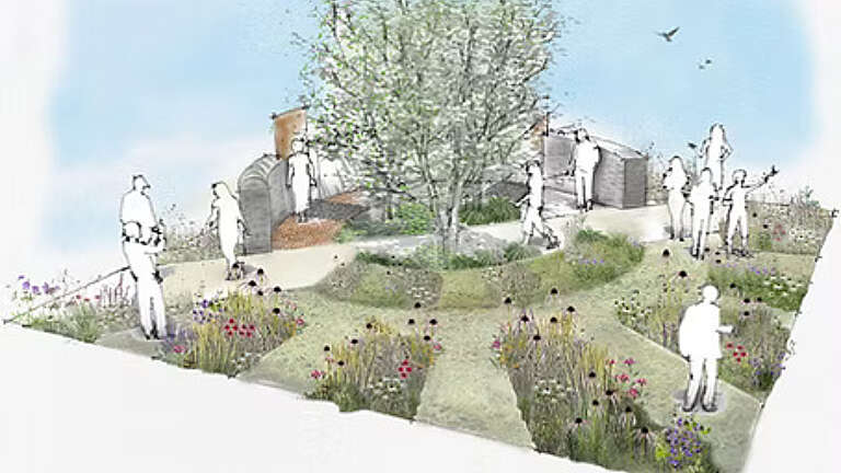 Rather than battling against our gardens, we should learn to work with them. This RHS Feature Garden demonstrates how embracing the natural qualities of your space can lead to a happier, healthier garden. The design is inspired by the rays of the sun, radiating outward from a central shaded circle into the surrounding space. Subtle references to Yorkshire’s industrial heritage are woven throughout, grounding the garden firmly in its local context.
