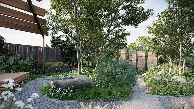 Designed by Allon Hoskin and Robert Beaudin, the Pathway Garden is inspired by the work of the Pathway charity, which supports people out of homelessness. Its design features interconnecting spaces with an open feel and no dead ends, symbolising the possibility of moving forward. Boulders intersect the first section of path, representing the obstacles individuals often face on their journey toward a healthier and more secure life. Many of these boulders—including a specially crafted bird bath—were provided by Claire Forth from the West Thurrock Depot in collaboration with Modular Garden Limited, the project’s contractors.