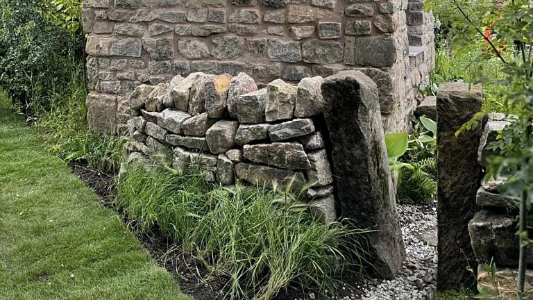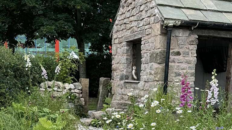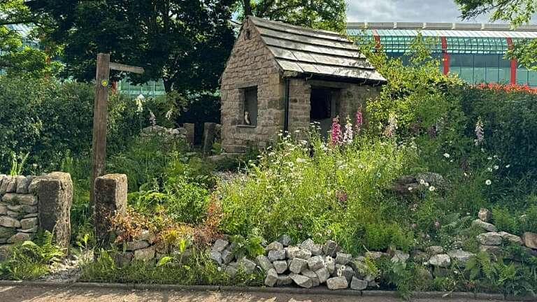 This garden was designed in collaboration with Derby College and the Derbyshire Historic Buildings Trust to showcase the Bonsall Field Barn Restoration Project. At its heart is a restored field barn set within a landscape inspired by the Peak District village of Bonsall. Traditional dry stone walling reflects local craftsmanship, while a limestone path symbolises the Limestone Way. The garden is predominantly planted with UK native species, arranged around a dew pond and a representation of a covered, disused lead mine shaft featuring ‘T’Owd Man of Bonsall’. Planting reflects the local limestone landscape, incorporating a wildflower meadow alongside ornamental species suited to calcareous conditions.