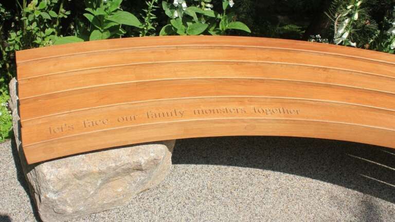 Designed to represent the ‘monsters’ from the short film that was produced for the project, Alistair requested some Celtic, Gabbro and Caledonian Boulders and Scottish Beach Cobbles, of which would be placed strategically in the garden, leading up the pathway towards the water feature and bench. The boulders, with their mixed textures, shapes and colours represent how “no one monster can be defined and a monster for one person isn’t necessarily the same for another”. As the path continues to the bench and water feature, the boulders go from harsh and jagged to much more even and flat, becoming the Scottish Beach Cobbles. The ‘monsters’ are “eventually tamed, smoothed out and you could say healed.”